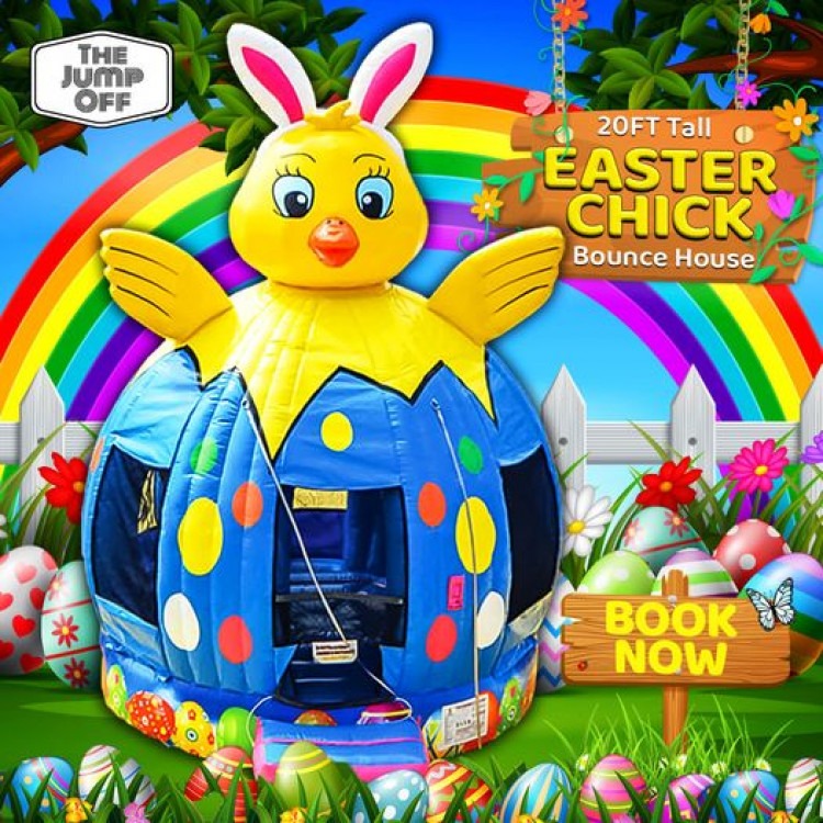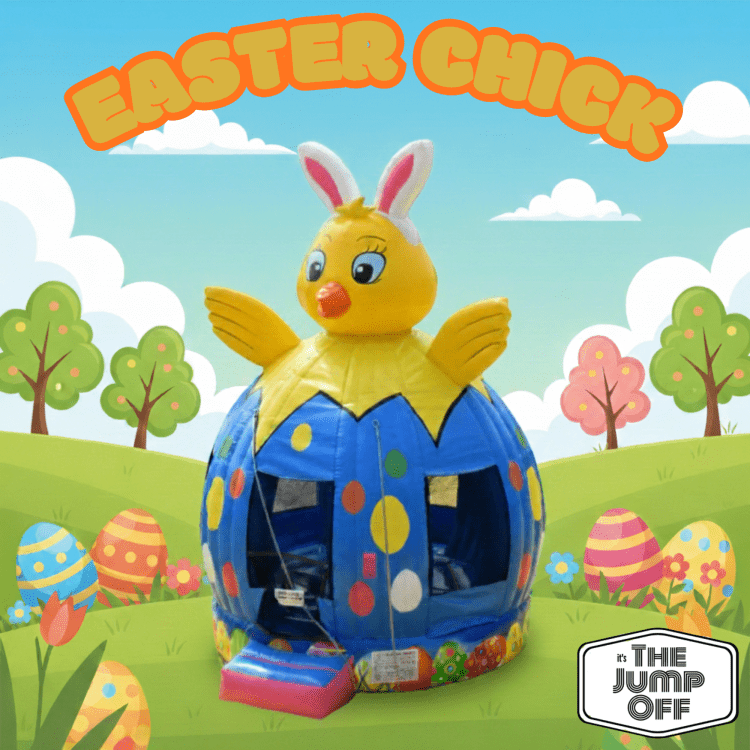 There's no better way to celebrate Easter than with our Easter Chick Bounce House. The kids will have an amazing bouncing around and playing with their family. Easter is one of our busiest holidays for inflatable rental at The Jump Off because the weather is amazing, and the families get together to celebrate the arrival of spring! This bounce house is made with super bright colors, and with a screened net keeps the kids safe and also allows the parents to keep a watchful eye on their safety. There is also an inflated entrance ramp so the kids can enter the jump house easily.