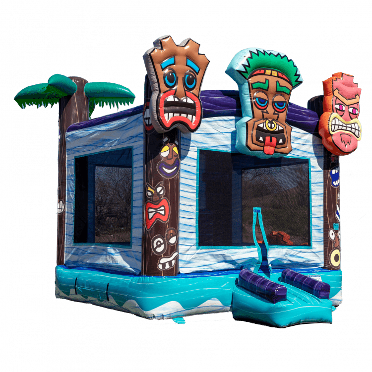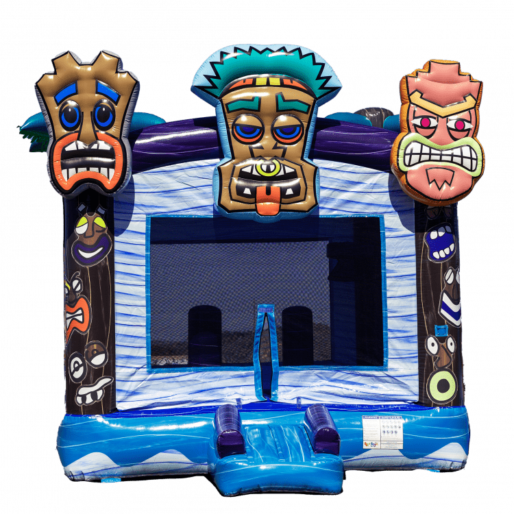 The Tiki Tovi Bounce House is a true show stopper with its fun, island vibes and huge tiki graphics! Inside the bouncing area has 2 obstacle course pylons for the kids to play with as well as a basket ball hoop for competition fun! There's a safe-secure zipper opening to keep the kids safely inside the bounce area and the huge safety-mesh windows will keep the kids nice and cool with airflow as well as allow you to keep an eye on them for save jumping!