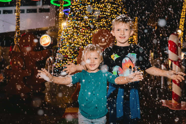 Requires only standard power and a small setup area. Snow is safe, non-slip, and evaporates clean.